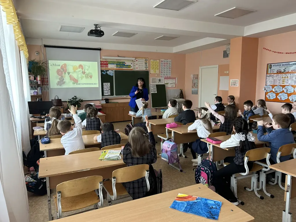 23 апреля 2026 года в 1 "а" классе гимназии №5 сотрудники детской городской библиотеки провели увлекательную познавательную беседу под названием "Мои витаминки". Мероприятие было посвящено важности витаминов для здоровья и правильного развития детей.